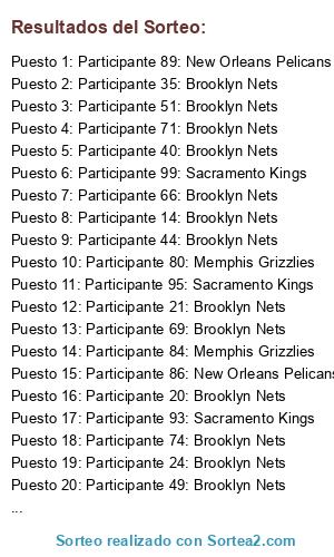 - Puesto 1: Participante 89: New Orleans Pelicans