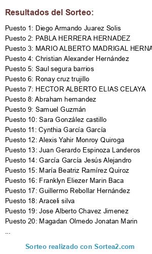 Resultados del sorteo: