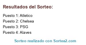 Lista de participantes: Alaves, Atletico, Chelsea, PSG.