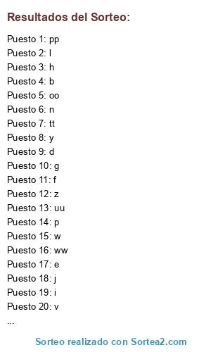 Lista de participantes: q, w, e, r, t, y, u, i, o, p, a, s, d, f, g, h, j, k, l, z, x, c, v, b, n, m, qq, ww, ee, rr, tt, yy, uu, ii, oo, pp.