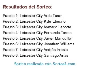 Lista de participantes: Leicester City Iker Casillas, Leicester City Kasper Schmeichel, Leicester City Isco Alarcón, Leicester City Thievy Bifouma, Leicester City David Silva, Leicester City Aymeric Laporte, Leicester City Marcelo, Leicester City Andrés Iniesta, Leicester City Santiago Arias, Leicester City Manuel Nolito, Leicester City Holger Badstuber, Leicester City Benedikt Howedes, Leicester City Javier Manquillo, Leicester City Jamie Vardy, Leicester City Marco (cedido) Asensio, Leicester City Fernando Torres, Leicester City Iñigo Martinez, Leicester City Jano Ananidze, Leicester City Kyle Ebecilio, Leicester City Jonathan Williams, Leicester City Arda Turan.