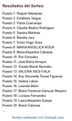 Lista de participantes: Rocío Jazmin Fritz, gabriela veroitza, Camila Rodriguez, Claudia Mabel Soto, Fiorela Nicole Rosales, María Teresa Freire, VALERIA INES FIALA, MARIA ANGELICA ROGA, Erika cecilia castro, PABLO ALBERTO MORETA, Marianela Fierro, Mariana itati vilo, Marcia Támara Guzman, Leonela Melin, Romina Osorio, Alejandra Paola Valdez, Edith Alejandra Hernandez, Natalia yurquina, Abigail oviedo, Salomé Aniela Avila Inostroza, Hilda Viviana Maza, Norma gladys Pichunman, Patricia Asencio, Santiago Alejandro Maza, Bibiana Andrea Fernández, Julia Elena Flores, José María ferreyra, Perla Beatriz Fernandez, Gabriela Carrasco, Yamila Soledad Conomilla, Yamila Ayelen Cau, Rocio ortiz, Evelina Delgado, Valeria Lobos, Andrés Eduardo Torres, Lorena Inostroza, Nanci De Angeli, Beatriz Sepúlveda, Maria Gracia Navarro Dadomo, Kenat Giuditta Pietrantonio Mendoza, fernanda arganaraz, Daniela Pinilla, Ana Laura Gruich, Noelia Vazquez, Castro Sarai, Maria Florencia Gianuzzi Moyano, Maríana Alejandra Verdugo, Gabriela Susana Railaf, Laura Cecilia Martín, Sandra Martinez, Teresa Mabel Chicote, Gustavo cifuente, Any Simonella Flored Figueroa, Claudia Beatriz Rodríguez, Estela Mabel Parra, José María Ferreyra, Garrido Lourdes, Yulimar Oliveira, Liliana Graciela Gómez, Mellado Diego, Jorge Cristian Cagol, Maria del Carmen Fuentes, Diamela Becker, Norma Romero, Luciana Fernandez, María Cabezas, Víctor Hugo Sosa, Gisella Mariel Ramidán, Naiara Jaqueline Giménez Ayala, Andrea Troncoso, Johanna vega, Laura Alejandra Quispe, Carina Beatriz Sarmiento, Pia Abril Chacoma, cristian fernando moreno, Marcos Natalia Beatriz, Estafania Vargas, Belen Gutiérrez, Mariela Jara, Torres Griselda Valeria, Rut Gonzalez, cecilia valdebenito, Daniela Ocampo, Veronica chándia, Soto Yanina Elba, Maria Alejandra Cabezas, Sandra sarmiento, Suyai Acuña Martin, Araceli Retamal, EMILIANO SEGUNDO MUÑOZ, Paola Cusicanqui, facundo eduardo muñoz, Raquel Velasquez, Troncoso andrea, Katherine alvarez yovanolo, Walter javier troncoso, Elizabeth Carabajal, Pena, Ivana Karina.