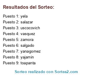 Lista de participantes: salazar, salgado, toapanta, uscocovich, vasquez, yajamin, yanagomez, yela, zamora.
