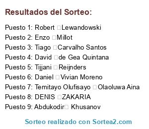 Lista de participantes: Maximiliam Beier, Adam Arvelo, Joan García Pons, Isamel Bennacer, Pedro (pedri) Gonzales, WOJCIECH TOMASZ SZCZESNY, Amara Diouf, DENIS ZAKARIA, Temitayo Olufisayo Olaoluwa Aina, Robert Lewandowski, Matheus Santos Carneiro da Cunha, Abdukodir Khusanov, Jamal Musiala, Thiago Ezequiel Almada, Tijjani Reijnders, Baris alper Yilmaz, LAMINE YAMAL, Nico Schlotterbeck, Sergi Cardona, Malcom Filipe silva de Oliveira.