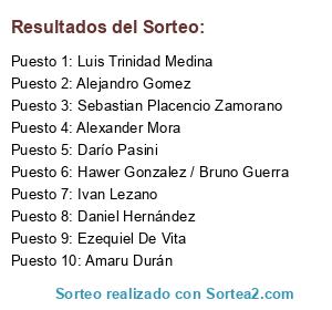Lista de participantes: Hawer Gonzalez / Bruno Guerra, Matias Rios, Cristian Correa, Alejandro Vouilloud, Joaco Perez, Jovino Guerra, Maty Sosa, Nico Rio, Brandon Ortiz Muñoz, Carlos Pauta.
