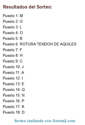Lista de participantes: A, B, C, D, E, F, G, H, I, J, K, ROTURA TENDON DE AQUILES, L, M, N, O, P, Q.
