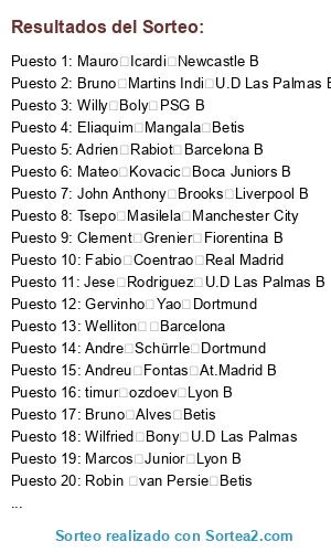 Tipo de sorteo: Jugadores de fútbol