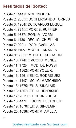 Resultados del sorteo: