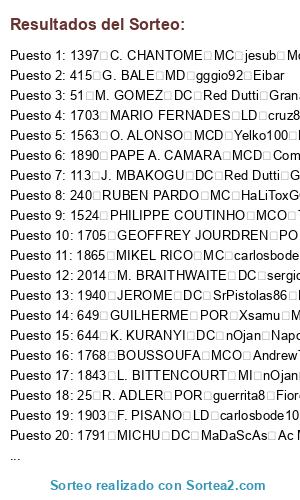 Resultados del sorteo: