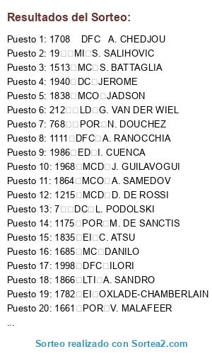 Resultados del sorteo: