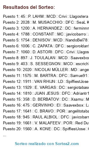 Resultados del sorteo: