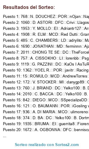 Resultados del sorteo: