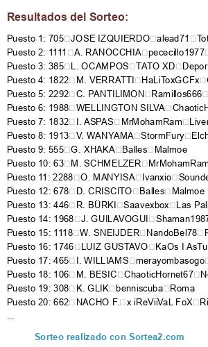 Resultados del sorteo: