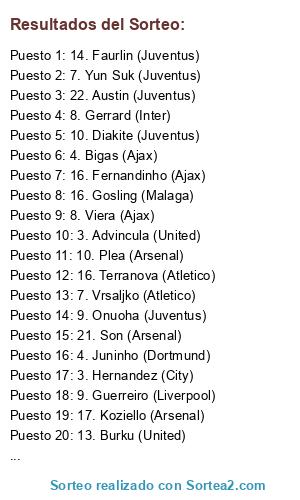 - Puesto 19: 17. Koziello (Arsenal)