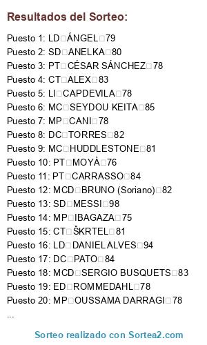 Tipo de sorteo: Jugadores de fútbol