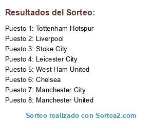 Lista de participantes: Arsenal, Chelsea, Manchester City, Manchester United, Liverpool, Tottenham Hotspur, Everton, Leicester City, Stoke City, West Ham United.