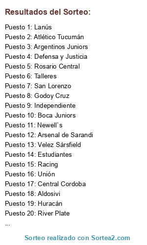 Lista de participantes: Boca Juniors , River Plate , Racing , San Lorenzo , Velez Sársfield , Independiente , Defensa y Justicia , Estudiantes , Lanús , Newell`s , Talleres , Colón , Argentinos Juniors , Banfield , Godoy Cruz , Huracán , Rosario Central , Atlético Tucumán , Aldosivi , Arsenal de Sarandi , Central Cordoba , Gimnasia y Esgrima , Patronato , Unión.