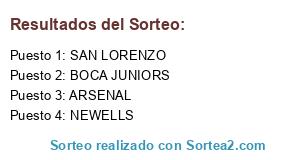 Lista de participantes: BOCA JUNIORS, SAN LORENZO, ARSENAL, NEWELLS.