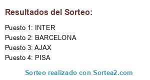 Lista de participantes: AJAX, BARCELONA, INTER, PISA.