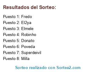 Lista de participantes: Robinho, Fredo, Elmele, Poveda, Superdeivil, Donato, Milla, El2ya.