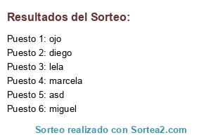 Lista de participantes: diego, marcela, miguel, lela, ojo, asd.