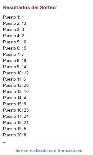 Lista de participantes: 1, 2, 3, 4, 5, 6, 7, 8, 9, 10, 11, 12, 13, 14, 15, 16, 17, 18, 19, 20, 21, 22, 23, 24.
