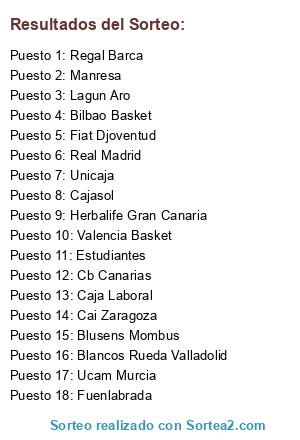 Lista de participantes: Herbalife Gran Canaria, Estudiantes, Valencia Basket, Ucam Murcia, Lagun Aro, Regal Barca, Cajasol, Blancos Rueda Valladolid, Bilbao Basket, Real Madrid, Caja Laboral, Fuenlabrada, Cb Canarias, Unicaja, Blusens Mombus, Manresa, Fiat Djoventud, Cai Zaragoza.