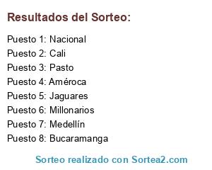 Lista de participantes: Nacional, Medellín, Pasto, Millonarios, Jaguares, Cali, Améroca, Bucaramanga.