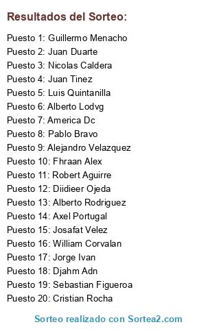 Lista de participantes: rodry124, santtiago0009, fam_cantu, puipui, pipesenapy, ronaldolivo28, Dylankf2002, zoofram, juancgz25, jonafor2601, salcidocoba, jorgedz1290, EDWY1995, TITO, luis carlos rivas cordoba, stivenrc3710, fifamedellin, adrian17ca, eltano_CABJ, jARCORKILLER, .