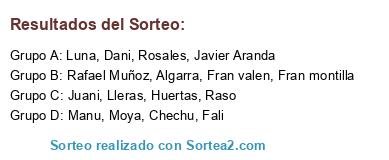 Lista de participantes: Juani, Javier Aranda, Rafael Muñoz, Fali, Manu, Chechu, Moya, Luna, Lleras, Huertas, Algarra, Rosales, Raso, Fran valen, Dani, Fran montilla.