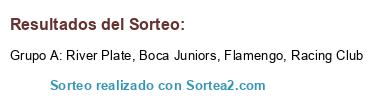 Lista de participantes: Boca Juniors, Flamengo, River Plate, Racing Club.
