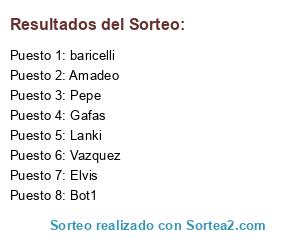 Lista de participantes: Elvis, Vazquez, baricelli, Lanki, Gafas, Pepe, Amadeo, Bot1.