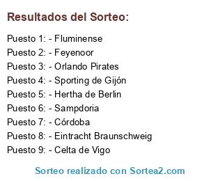 Lista de participantes: - Sporting de Gijón, - Córdoba, - Hertha de Berlin, - Sampdoria, - Orlando Pirates, - Eintracht Braunschweig, - Feyenoor, - Celta de Vigo, - Fluminense.