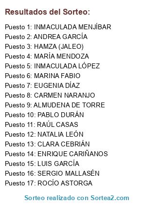 Resultados del sorteo: