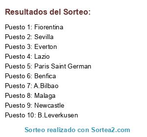 Lista de participantes: Everton, Newcastle, Lazio, A.Bilbao, Sevilla, Malaga, Paris Saint German, Benfica, B.Leverkusen, Fiorentina.