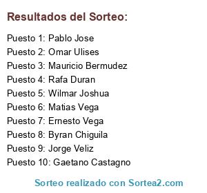 Resultados del sorteo: