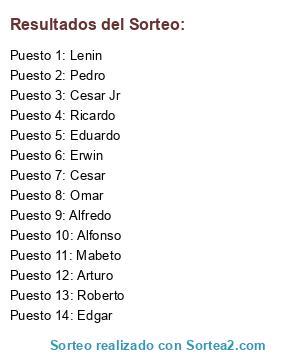 Resultados del sorteo: