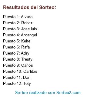 Lista de participantes: Keke, Tresty, Adry, Toty, Alvaro, Carlitos, Carlos, Rafa, Rober, Dani, Jose luis, Arcangel.