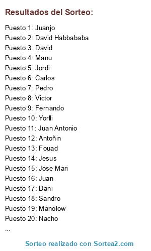 Lista de participantes: Juan Antonio, Manu, Yeray, David Habbababa, David, Jose Mari, Jose Rip, Manolow, Nacho, Pedro, Alvaro, Antoñin, Carlos, Edu, Fernando, Juanjo, Yorlli, Sandro, Victor, Dani, Fouad, Jesus, Jordi, Juan.