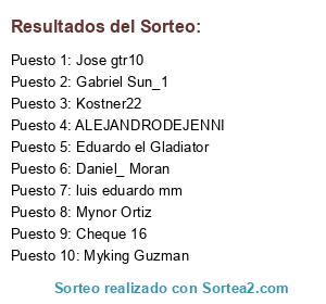 Lista de participantes: Colocho034, ludin vasquezz, Moreno Espuna, marraulletran, Jaycampos, fernando sanicc, Javier vARGAS47, Kevitic, PJSR16, Yefry Ruano.