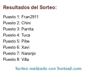 Lista de participantes: Xavi, Villa, Pibe, Parrita, Naranjo, Chini, Fran2911, Tuca.