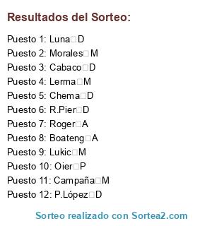 Resultados del sorteo: