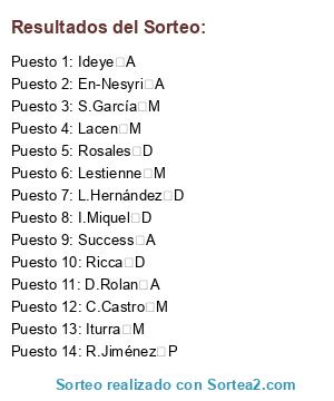 Lista de participantes: C.Castro M, D.Rolan A, En-Nesyri A, I.Miquel D, Ideye A, Iturra M, L.Hernández D, Lacen M, Lestienne M, R.Jiménez P, Ricca D, Rosales D, S.García M, Success A.
