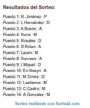 Lista de participantes: A.Bueno A, A.Gonzalez M, C.Castro M, D.Rolan A, En-Nesyri A, I.Miquel D, Iturra M, L.Hernández D, Lacen M, Lestienne M, M.Torres D, R. Jiménez P, Rosales D, Success A.