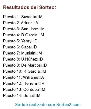 Lista de participantes: Aduriz A, Beñat M, Capa D, Córdoba M, D.García M, De Marcos D, Herrerín P, Muniain M, R.García M, San José M, Susaeta M, U.Núñez D, Williams A, Yeray D.