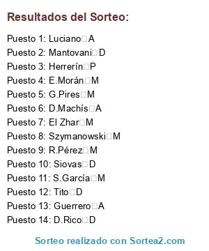 Lista de participantes: D.Machís A, D.Rico D, E.Morán M, El Zhar M, G.Pires M, Guerrero A, Herrerín P, Luciano A, Mantovani D, R.Pérez M, S.García M, Siovas D, Szymanowski M, Tito D.