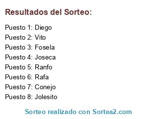 Lista de participantes: Rafa, Joseca, Jolesito, Fosela, Vito, Diego, Ranfo, Conejo.