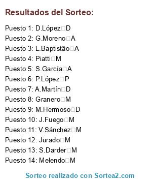 Lista de participantes: A.Martín D, D.López D, G.Moreno A, Granero M, J.Fuego M, Jurado M, L.Baptistão A, M.Hermoso D, Melendo M, P.López P, Piatti M, S.Darder M, S.García A, V.Sánchez M.