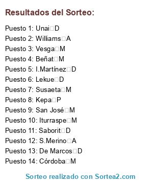 Lista de participantes: Beñat M, Córdoba M, De Marcos D, I.Martínez D, Iturraspe M, Kepa P, Lekue D, S.Merino A, Saborit D, San José M, Susaeta M, Unai D, Vesga M, Williams A.