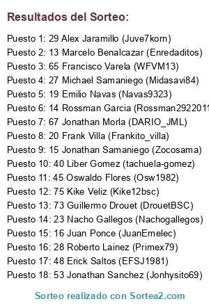 Resultados del sorteo: